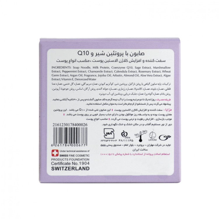 این صابون با ترکیب کیوتن و شیر با جلوگیری از تبخیر آب از سطح پوست مانع از خشکی آن شده و در پیشگیری از لکهای پوستی بسیار مؤثر عمل خواهد کرد.