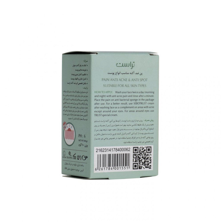 پن شستشوی آنتی آکنه تراست برای پوستهای مستعد جوش و آکنه مناسب بوده و خواص آنتی باکتریال فراوانی برای پوستهای چرب دارد. همچنین جوشهای سر سیاه و سر سفید را از بین برده و چربی بیش از حد پوست را کنترل میکند. یکی از ویژگیهای خاص این پن، این است که با دارا بودن مواد مؤثره خاص میتواند بر روی منافذ پوستی اثر بگذارد و به کوچک کردن منافذ پوستی کمک کند. همچنین این محصول در در درمان جای جوش یا لکههای قدیمی نیز به طور موثری عمل میکند و منجر به کنترل چربی پوست میشود.