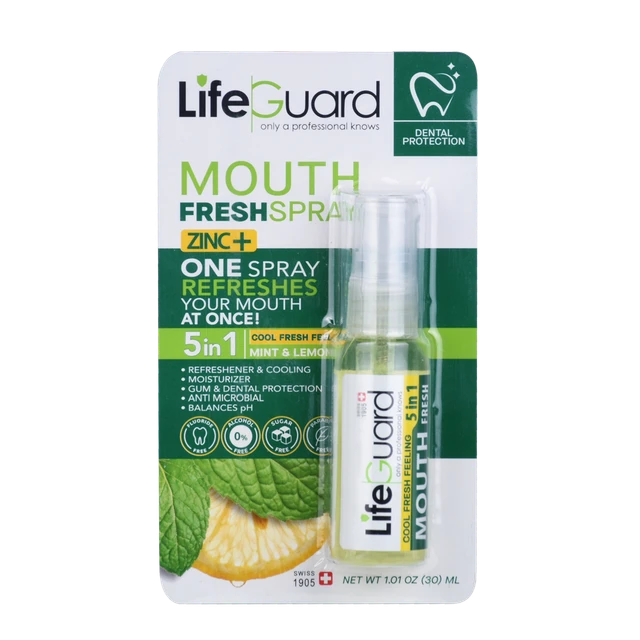 همانطور که میدانید انواع مختلفی از خوشبوکننده دهان وجود دارند، اما برای دریافت بیشترین اثربخشی، میبایست خوشبوکننده دهانی را انتخاب کرد که حاوی ترکیبات فعال ضد میکروبی، ضدالتهاب و کنترلکننده بوی بد دهان باشد و در عین حال کمترین عوارض را برای شما داشته باشد. بعضی از خوشبو کنندههای دهان، اثرات ضد باکتریایی ندارند و صرفاً برای ایجاد احساس خنکی و تازگی در تنفس استفاده میشوند، اما خوشبوکنندههای دهان لایفگارد انتخاب مناسبی برای شما هستند، زیرا خوشبوکنندههای دهان لایف گارد حاوی ترکیباتی مثل زینک، سالوادورا پرسیا بارک رووت اکسترکت، متیل سالیسیلات، عصاره بابونه، عصاره نعناع، عصاره لیمو و عصاره دارچین هستند که با پیشگیری و کنترل رشد میکروبها در دهان علاوه بر اینکه به عنوان خوشبوکننده دهانی و رفع بوی بد دهان بعد از مصرف دخانیات و بعد از صرف غذا کاربرد دارند با عملکرد چندگانه مانند حس خنکی و تازگی، حفظ رطوبت دهان و تنظیم pH دهان موجب بهبود سلامت دهان و دندان میشود و از پوسیدگی دندانها و ایجاد پلاکهای دندانی جلوگیری میکند. همچنین خوشبوکنندههای دهان لایف گارد، یک محصول غیرالکلی است بنابراین این محصول برای همه افراد و سلیقهها قابل استفاده است. خوشبوکنندههای دهان لایفگارد در دو مدل خوشبو کننده دهان نعناع/لیمو و دارچین/نعناع طراحی و فرموله شدهاند که عموماً باعث رفع بوی بد دهان و حس تازگی به صورت اختصاصی در کنترل پوسیدگی و پلاکهای دندانی عمل میکنند و با داشتن ترکیبات فعال ضد التهاب، به درمان بیماریها و التهابات لثه کمک میکنند.