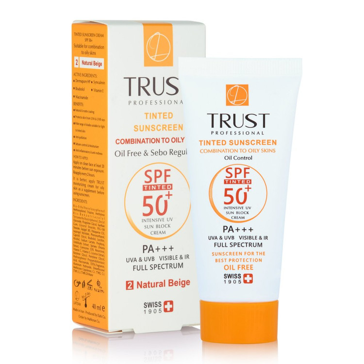 کرمهای ضدآفتاب رنگی تراست با SPF50+ از مرغوبترین و جدیدترین مواد اولیه موثره دارای حداکثر حفاظت دربرابر پرتوهای مضر خورشید ساخته شدهاند؛ این کرم با وجود بهرهمندی از بافتی سبک، دربرابر آسیبهای وارده توسط نور خورشید به خوبی از پوست محافظت و با مهار رادیکالهای آزاد از تخریب سلولهای پوستی جلوگیری میکند. همچنین با مصرف این محصول، بدون بسته شدن منافذ پوستی و ایجاد خلل در تنفس سلولهای پوستی، ضمن کنترل چربی، پوستتان آبرسانی میشود.