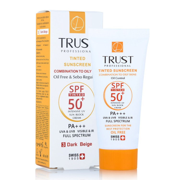 کرم ضد آفتاب رنگی و کنترل چربی بژ تیره (پوست مختلط تا چرب) تراست TRUST 🇨🇭