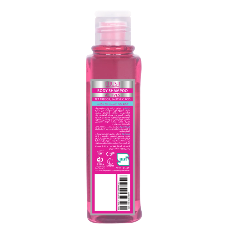 شامپو بدن اسپرت زنانه تراست، با داشتن منتول و زینک PCA در ترکیباتش، میزان تعرق را کنترل کرده و از تکثیر باکتریها روی پوست جلوگیری میکند. همچنین این محصول باعث حس خنکی و طراوت روی پوست شده و رایحهی مطبوعی روی آن ایجاد میکند. این محصول گزینه مناسبی برای استحمام بعد از ورزش است.