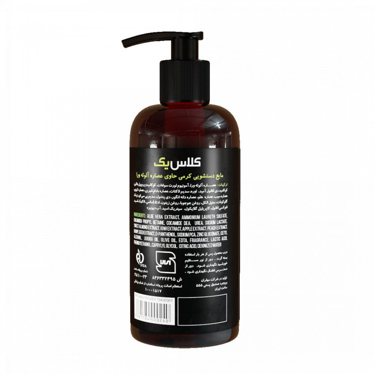 مایع دستشویی کرمی حاوی عصاره آلوئهورا کلاس یک CLASS1
