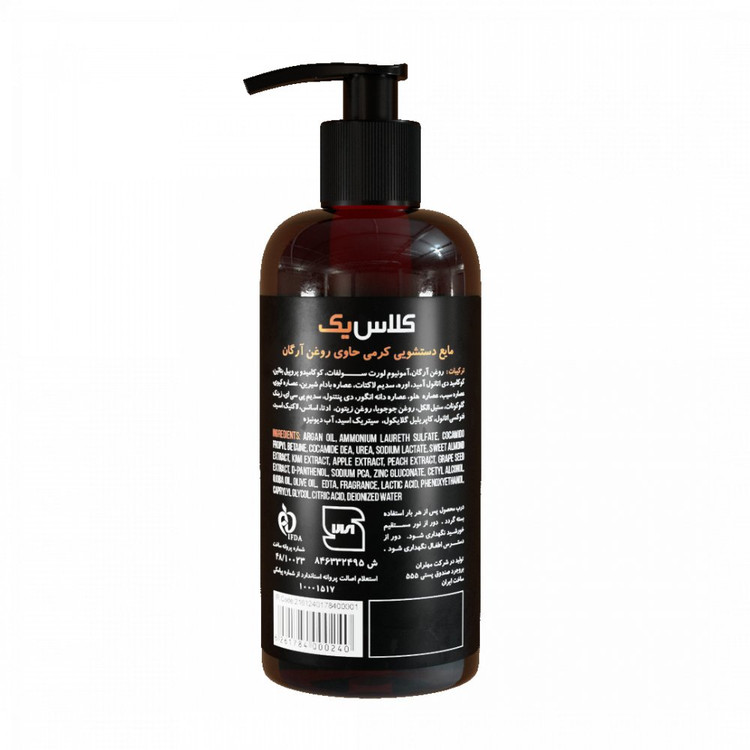 مایع دستشویی کرمی حاوی عصاره روغن آرگان کلاس یک CLASS1
