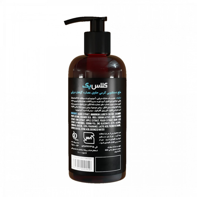 مایع دستشویی کرمی حاوی عصاره گیاهان دریایی کلاس یک CLASS1